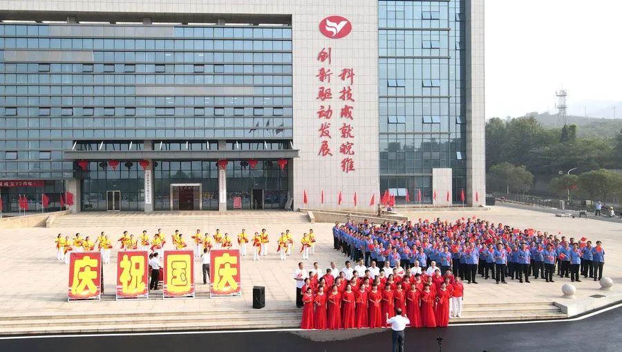 “我愛你中國,我愛你春天蓬勃的秧苗,我愛你秋日金黃的碩果……”研發(fā)大樓前紅旗招展,橫幅飄飄。朝陽初升,退休老同志自發(fā)組成的腰鼓隊、歌唱隊穿著節(jié)日的盛裝,早早在大樓前敲響喜慶的鑼鼓,在鑼鼓聲中跳起了歡快的舞蹈。