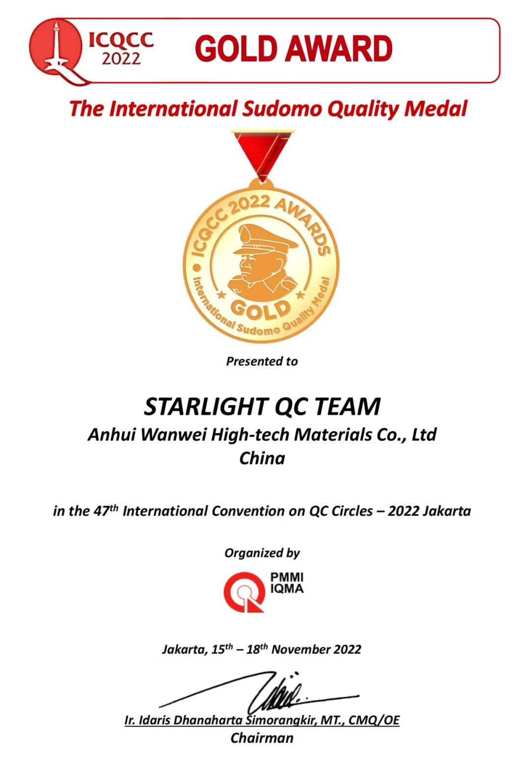近日,第47屆國(guó)際質(zhì)量管理小組(ICQCC)大賽在印尼首都雅加達(dá)召開(kāi)。來(lái)自全球國(guó)家和地區(qū)的800個(gè)代表隊(duì)參與成果發(fā)表和交流,公司有機(jī)分廠啟明星QC小組的成果《提高膜級(jí)PVA的優(yōu)級(jí)品率》在激烈競(jìng)爭(zhēng)中脫穎而出,榮獲最高獎(jiǎng)項(xiàng)—金獎(jiǎng)榮譽(yù)。